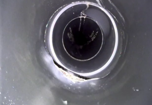 Kaapelikamera IV-kanavassa. Kameran päässä on kiinni ohjuri, joka pitää sen keskellä putkea.