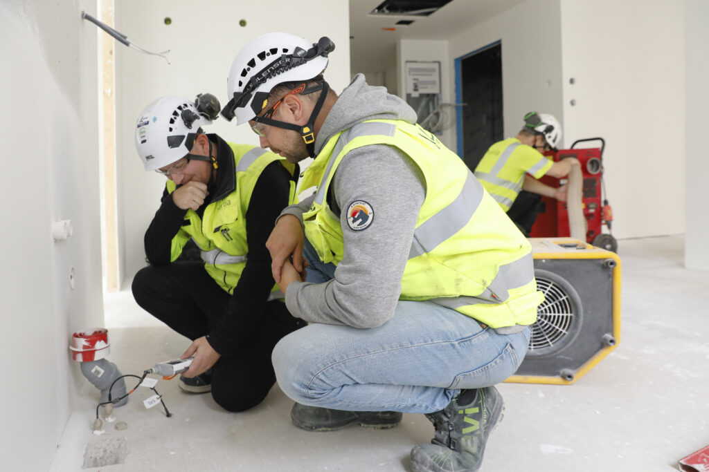 – Tarkensimme laskelmat yhdessä Vertian kanssa noin vuosi ennen vedeneristystä. Heidän asiantuntemuksestaan oli merkittävää hyötyä työvaiheiden ajoituksessa. Kuivatuksen aikataulu oli erittäin tiukka ja se aloitettiin sovitulla kalustolla. Pian huomattiin, että rakenteet kuivuivat odotettua nopeammin, Lehto kertoo.